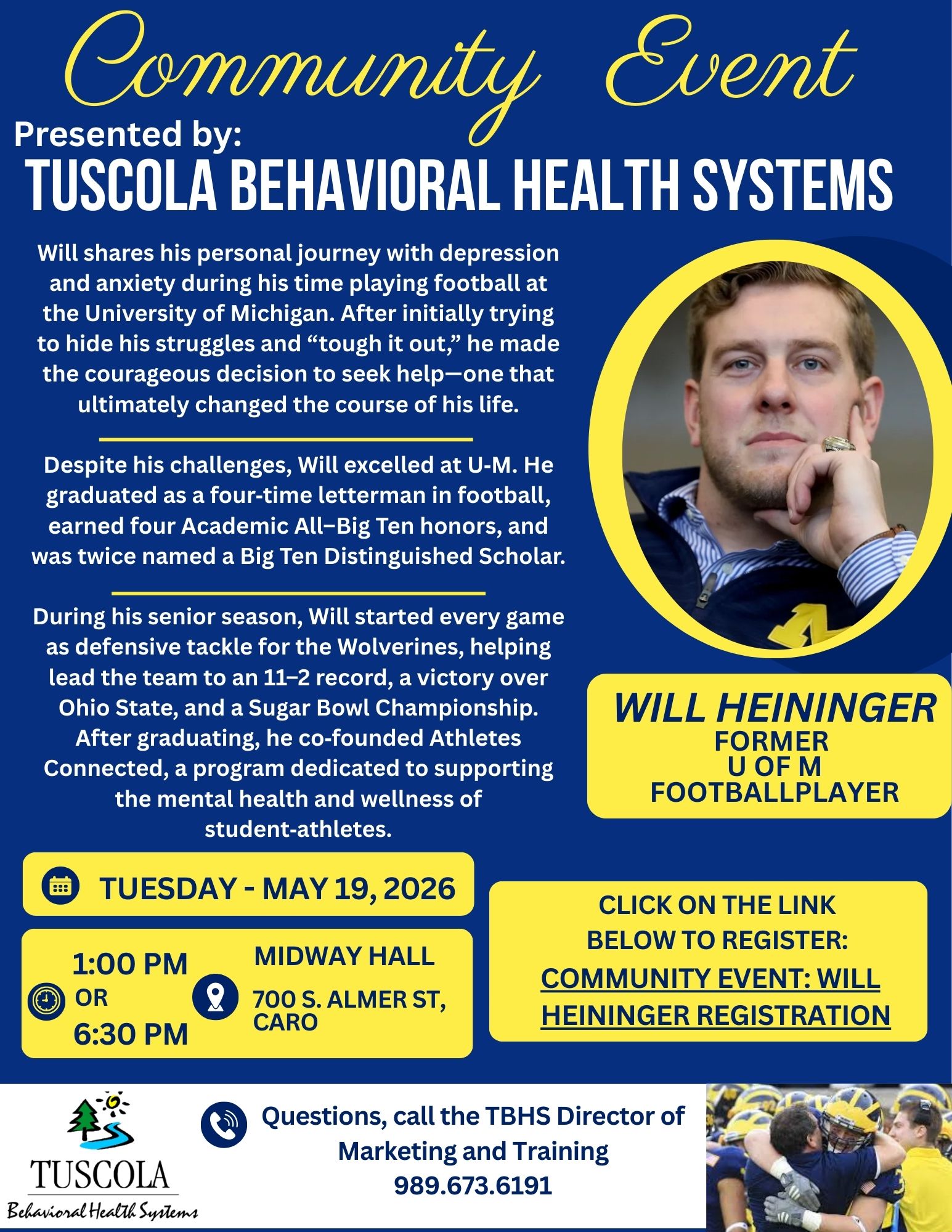 As Tuscola County's primary provider of behavioral health services, we are confident that we can assist with your health care needs. This area gives a brief overview of just a few of the many programs or services available to you. Whether you become a Primary Consumer (someone receiving services directly) or a Secondary Consumer (someone responsible for the person receiving care), we look forward to a relationship that will improve your life and the lives of your loved ones.